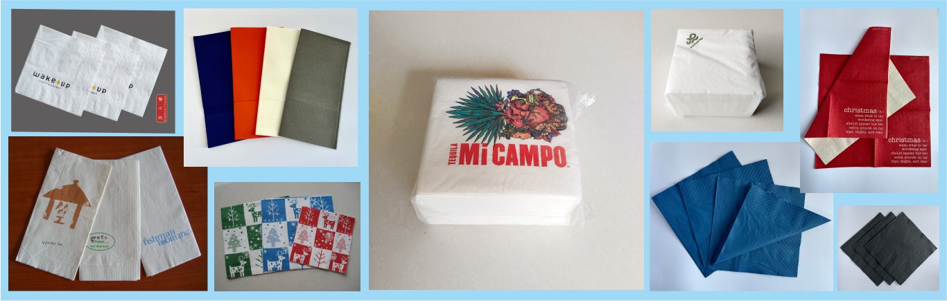 2.napkin color(white, black, blue, pink ,yellow)